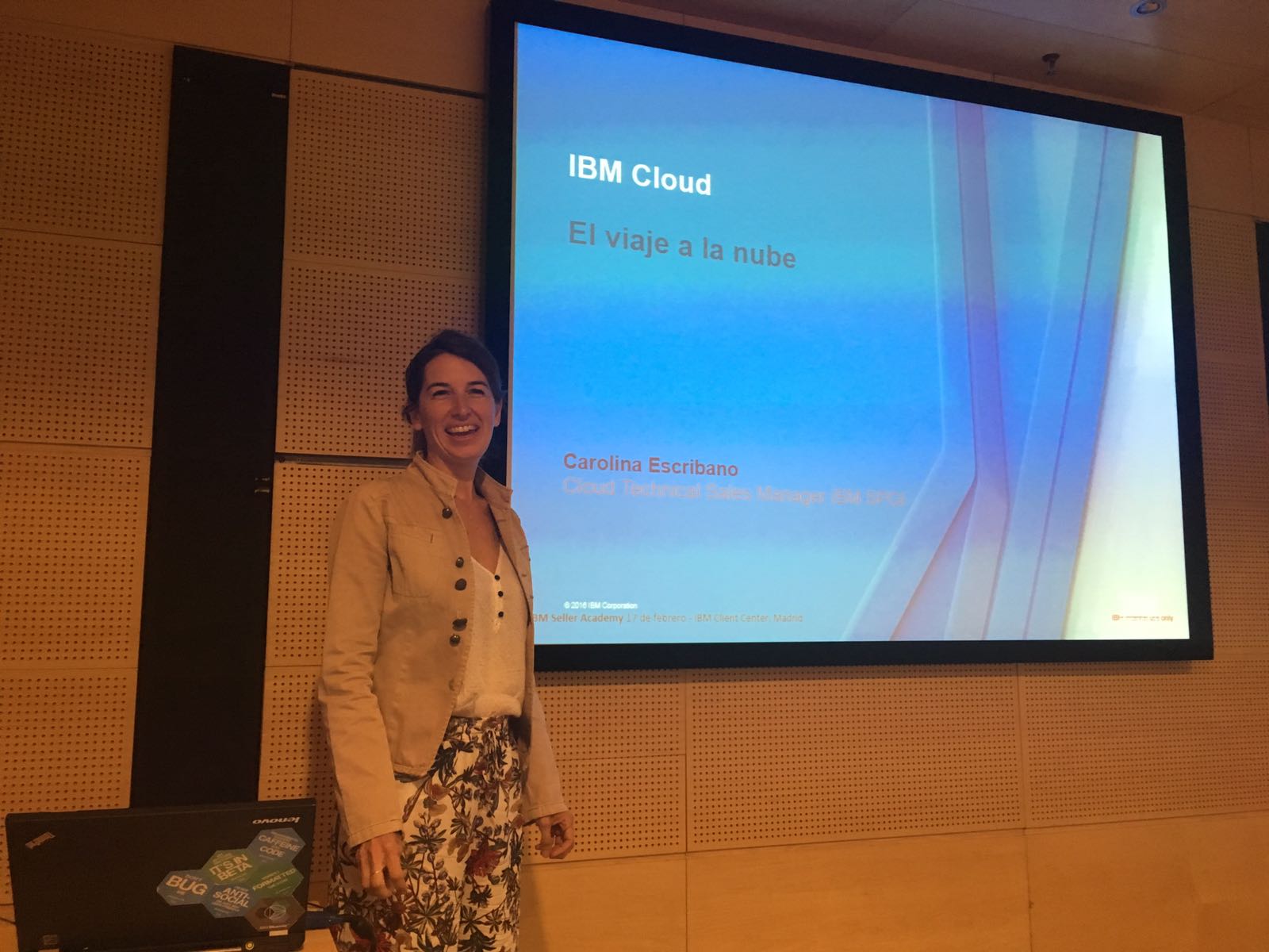 La Cloud Technical Sales Manager IBM SPGI, Carolina Escribano, inició las charlas e hizo un recorrido del viaje y gran giro que ha dado IBM durante los últimos años, mencionó además empresas tecnológicas que muestran esta evolución digital y que se han convertido en casos de éxito,“Whatapps, se ha posicionado en el sector de la comunicación y todo el mundo hace uso de ella. AIRBNB, UBER, AMAZON, también son empresas que se han posicionado en el mundo en distintos sectores. Lo curioso es que ninguna cuenta con cableado, ni infraestructura. Esto nos dice que están apareciendo nuevos tipos de empresas en el mercado que se caracterizan por centrar todo su negocio en la digitalización y utilizan técnicas de Big Data (IBM), con el objetivo de dar a cada usuario lo que necesita, sin grandes estructuras ni cables, todo en la nube”, aseguró la Sales Manager.