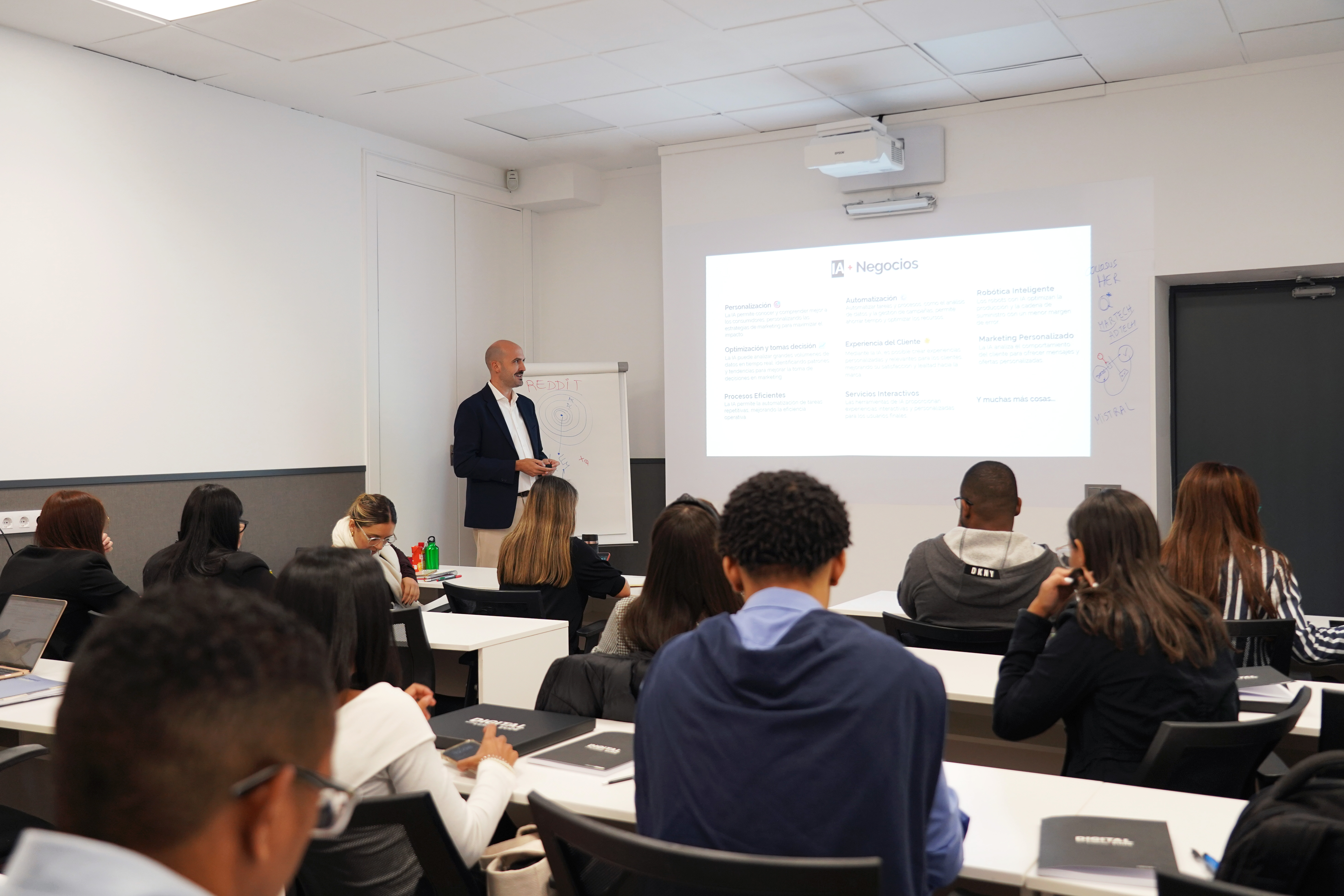 La semana internacional giró entorno a la Inteligencia Artificial y su impacto en el mundo de los negocios, abordando cómo esta tecnología está transformando los sectores industriales y laborales. Los participantes pudieron conocer de primera mano cómo las empresas están adaptándose al auge de la IA, lo que les permitió obtener una visión crítica y actual sobre las herramientas más vanguardistas. Con estas formaciones teóricas y prácticas, EUDE Business School potencia el valor diferencial de los profesionales en su futuro profesional, consiguiendo crear un impacto positivo en sus comunidades locales.