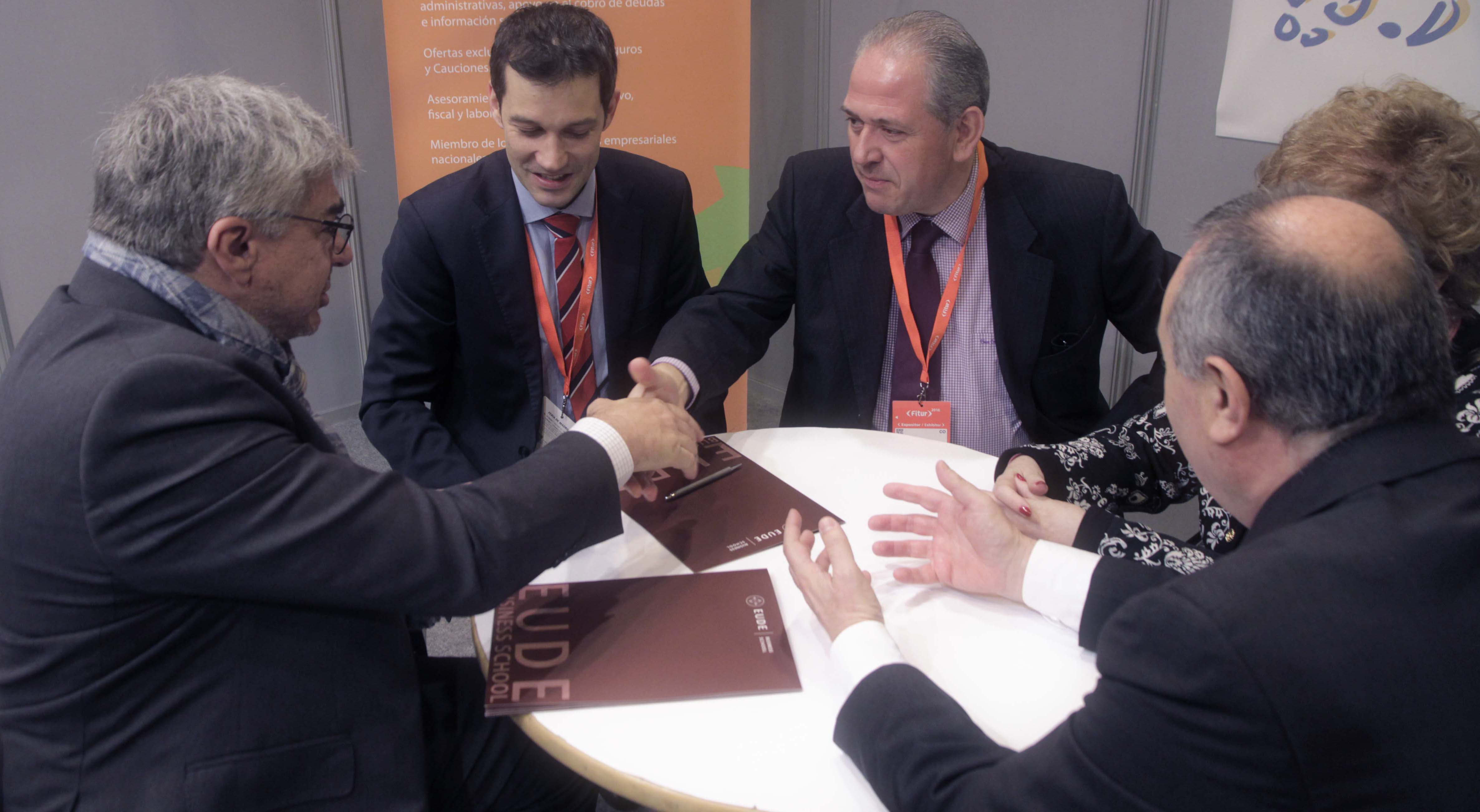 EUDE Business School acudió durante la mañana de hoy 22 de enero, a la Feria Internacional de Turismo FITUR para la firma del Convenio Marco con FETAVE (Federación Empresarial de Asociaciones Territoriales de Agencias de Viajes Españolas. Con esta firma se cumplen uno de sus propósitos perseguidos por la Escuela Europea de Dirección y Empresa y que es el de establecer acuerdos específicos para la difusión y promoción de los programas académicos de EUDE Business School, conjuntando esfuerzos, recursos y compartiendo conocimientos e información. Para ello se va a facilitar el acceso a estudiantes y profesionales vinculados a FETAVE.
