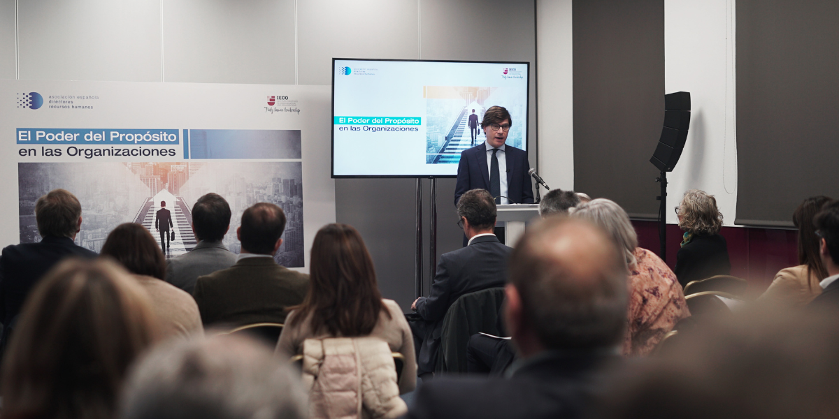En la jornada de hoy, 9 de febrero, se han presentado los resultados del estudio realizado por el Instituto para la Ética en la Comunicación y las Organizaciones (IECO) en colaboración con la Asociación Española de Directores de Recursos Humanos (AEDRH). El proyecto estudia “El Poder del Propósito en las Organizaciones”. Es decir, profundiza en la relación entre compartir un propósito común en la organización y la satisfacción laboral y el sentido que cada persona otorgaba a su trabajo. Además, se presentaron los resultados que desarrollan y explican las motivaciones detrás de los directores de Recursos Humanos.