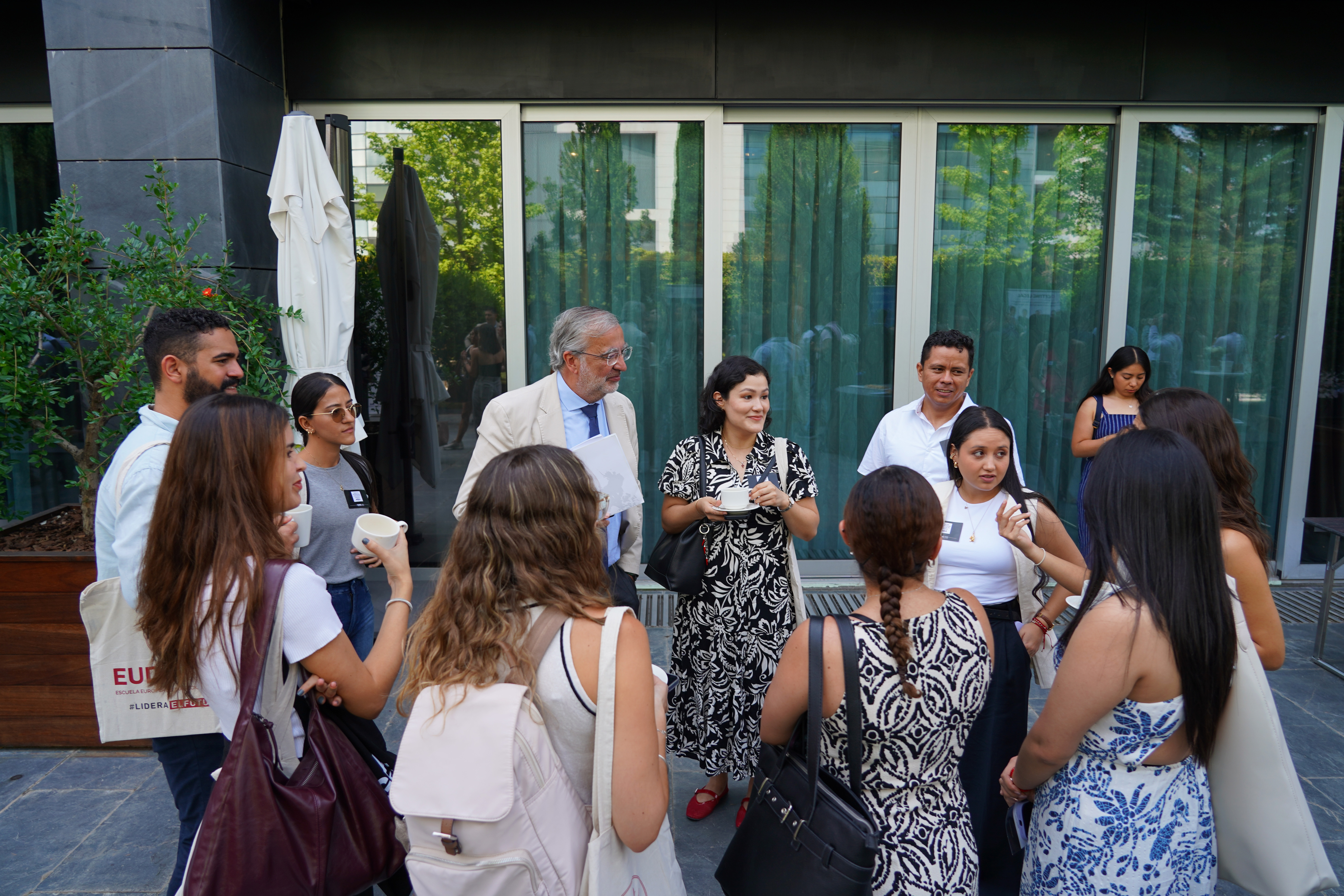Durante toda la jornada, los estudiantes estuvieron identificados con pegatinas de colores según el máster en el que están matriculados, facilitando así el primer contacto entre compañeros de programa y fomentando desde el inicio el espíritu de comunidad que caracteriza a EUDE.