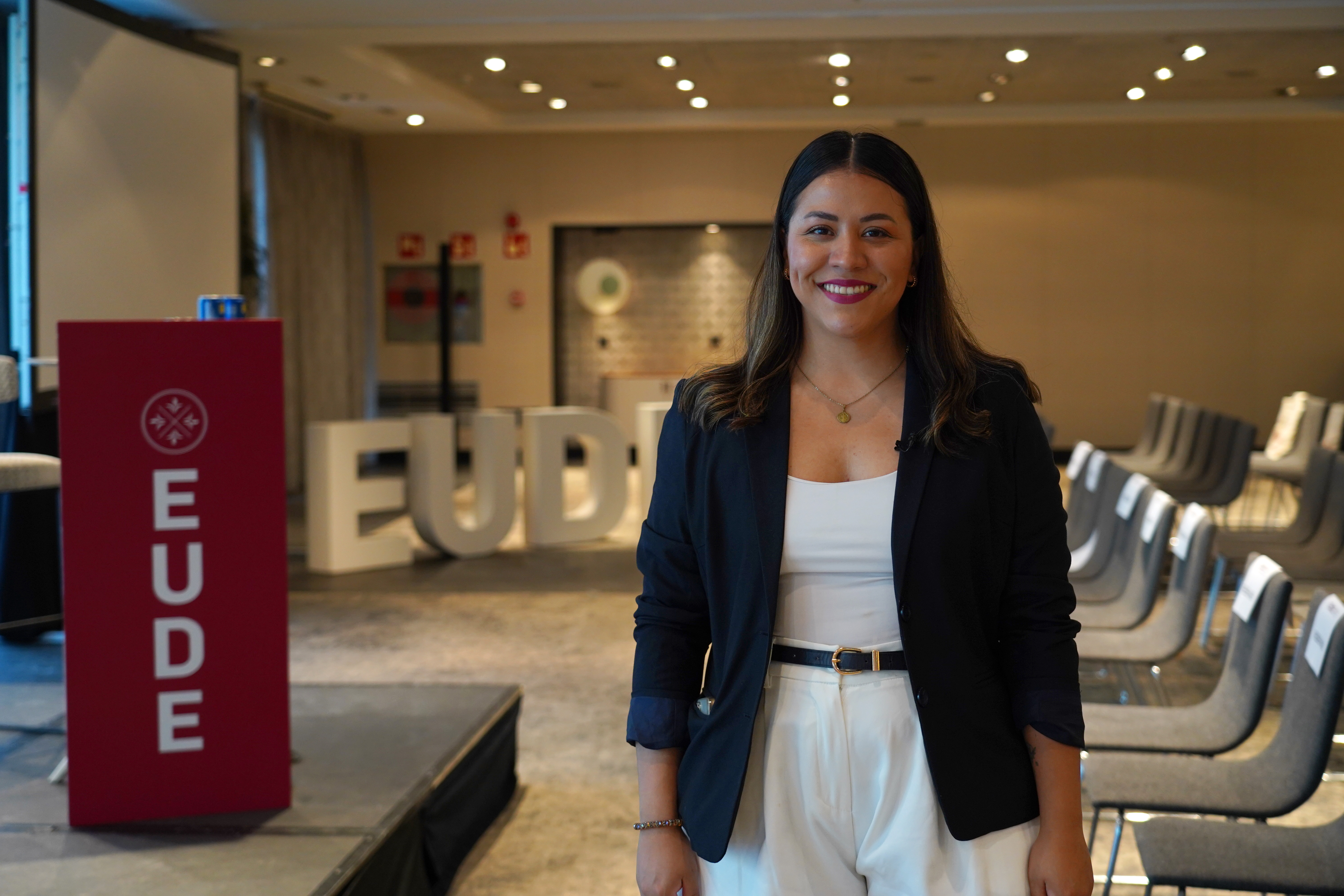 En su intervención, Paola quiso trasladar a los nuevos alumnos su propia experiencia en la escuela: “A nivel personal, lo que más destaco de EUDE son las amistades que he hecho aquí”, destacó. Asimismo, animó a los estudiantes a afrontar el reto con actitud positiva: “No se desanimen cuando las cosas no salen”, aconsejó, recordando la importancia de la perseverancia a lo largo del máster.