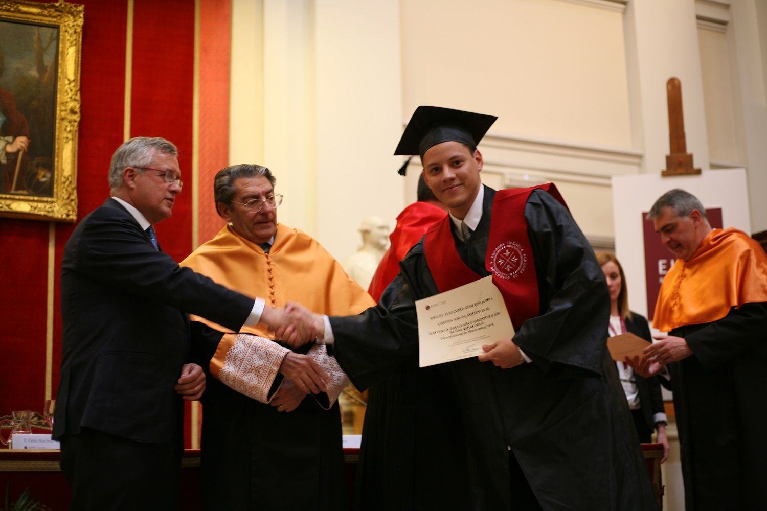 El pasado viernes EUDE Business School celebró otro año más el Acto de Graduación de los alumnos de la convocatoria de Abril 2014/2015. El encuentro, que se celebró en la Real Academia de las Artes de San Fernando, lugar emblemático y en pleno centro de Madrid, contó con la asistencia de más de 300 invitados entre alumnos y familiares, quienes pudieron cerrar con éxito un año lleno de esfuerzo y sacrificio. Ahora, con un título europeo bajo el brazo, los alumnos de EUDE comenzarán una nueva andadura con muchos retos profesionales por cumplir.