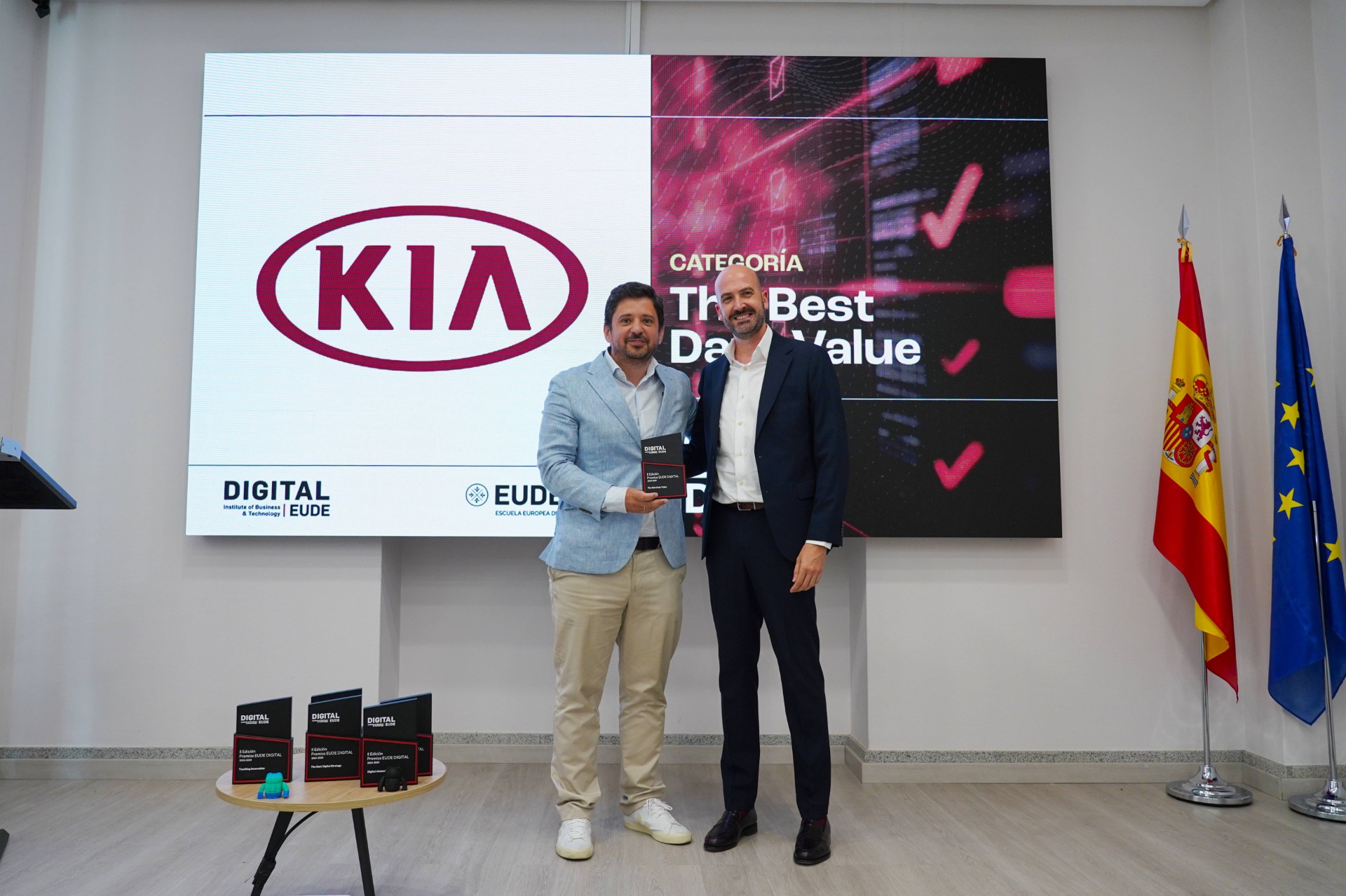 KIA ganó el premio a The Best Data Value, recogido por D. Carlos Sánchez, Head of Customer Experience & M.E.C.A. en KIA Iberia, entregado por D. Carlos Viera, director de EUDE Digital. En The Best Digital Strategy, TELEPIZZA resultó ganadora, recibiendo el galardón  Alejandro Gómez Lizarraga, PR & Brand Manager, entregado por D. Victor Melero, director de marketing y comunicación de EUDE.